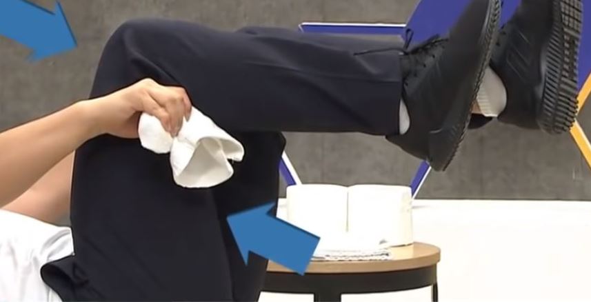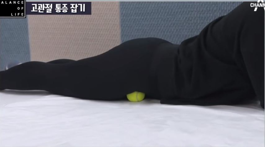 주먹 부수기는 두루마리 휴지를 사용하고, 고관절 인공호흡은 두꺼운 양말을 둥글게 말거나 테니스공 또는 필라테스 미니볼을 이용해 마사지를 합니다.
