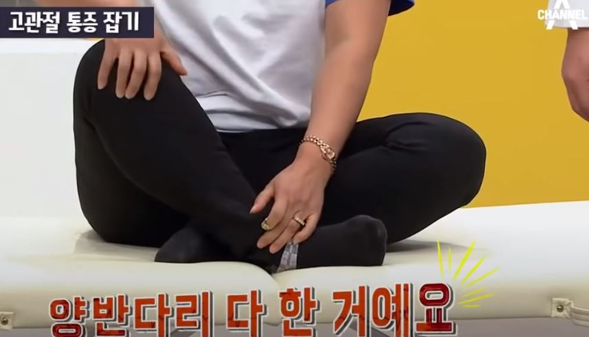 어느날 갑자기 양반다리가 안될 때가 핵심인데요, 양반다리를 했을 때 한쪽 무릎이 아래로 내려가지 않는 경우