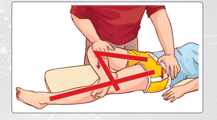 무릎과 골반을 눌러서 통증이 발생 되는지 확인합니다.