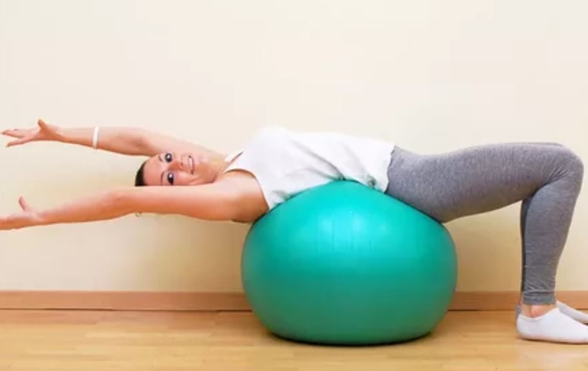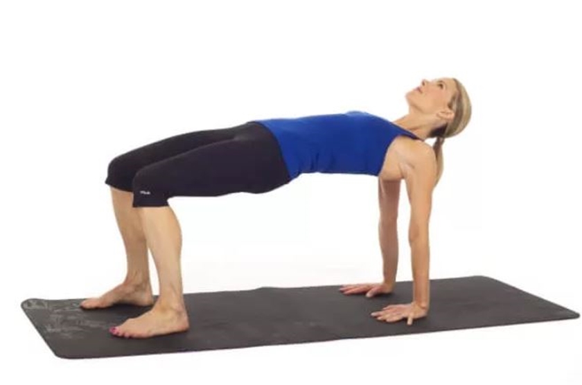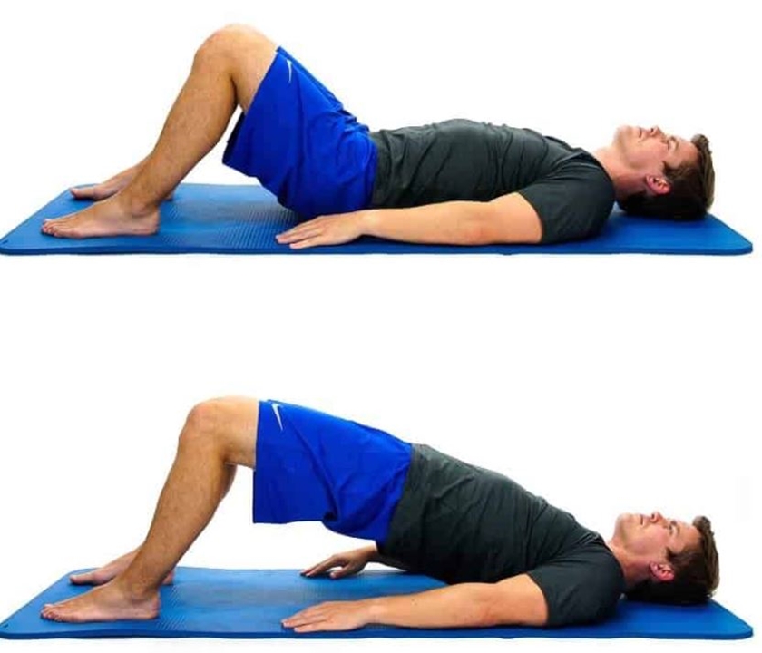 두번째는 브릿지 동작입니다. 바닥에 등을 대고 무릎은 구부린 상태로 두고 엉덩이에 힘을 주고 천장 방향으로 들어 올려 1~2초 버티세요.