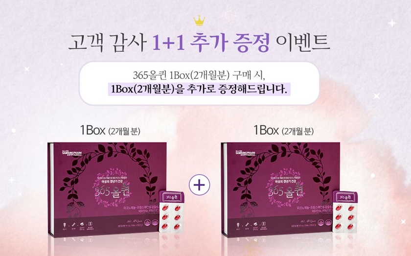 365올퀸공식몰에서는 1박스 구매를 하면 1박스를 추가로 증정하는 이벤트를 진행하고 있으니 관심있는 분들은 혜택 놓치지 마세요!