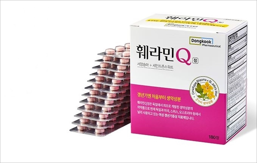 훼라민큐는 약국에서 판매되고 있는 동국제약의 여성 갱년기 영양제 1위 제품으로 TV광고를 통해서도 많이 접하고 있는데요, 훼라민큐는서양승마와 세인트존스워트의 생약 복합성분으로 식물성 성분으로 만들어졌습니다.