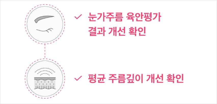 어린 콜라겐과 피부 건강의 관계를 살펴보면, 피부탄력은 5.6%, 피부수분은 9.7%, 눈가주름은 15.4% 개선이 되었다고 합니다. 또한 자외선에 의한 피부 노화 예방에도 도움이 됩니다.