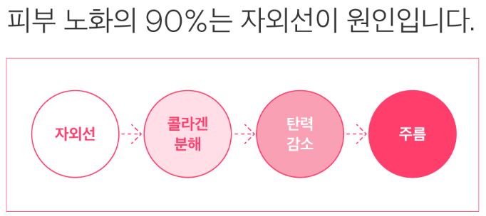 자외선 때문에 피부가 망가지기 쉽습니다. 사계절내내 자외선에 주의를 해야하는데요, 자외선으로 인해 콜라겐이 분해되어 버리면서 탄력이 떨어지고 주름이 늘어나기 때문입니다. 강한 자외선 노출을 피하고 어린 콜라겐을 섭취 한다면 콜라겐을 보충하고 건강한 피부관리를 할 수 있어요.