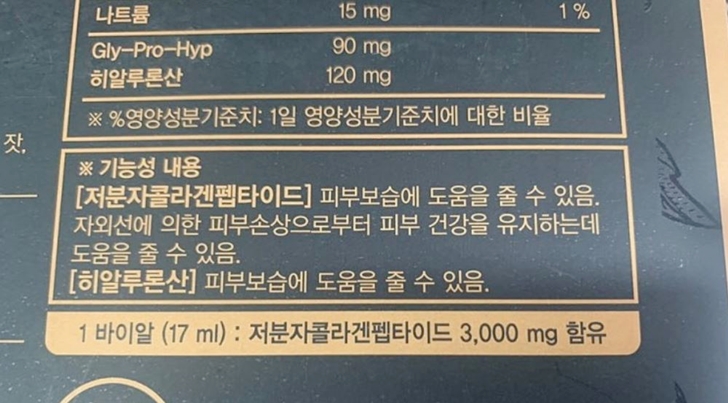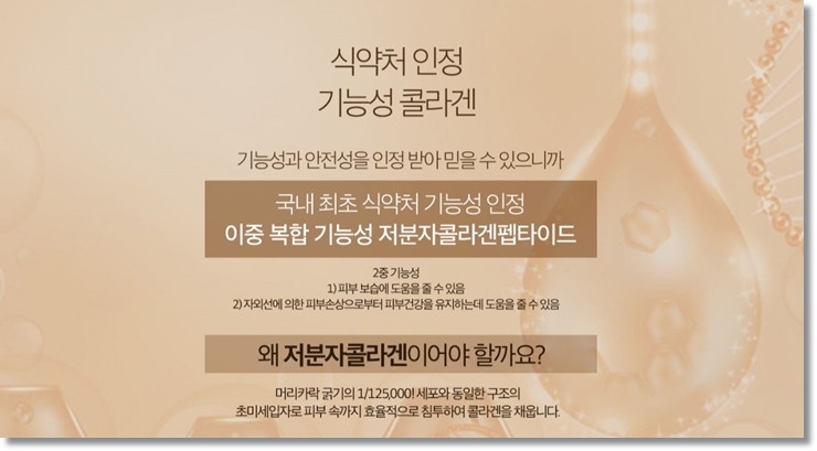 국내에서 최초로 식약처 기능성을 인정받은 저분자콜라겐 건강기능식품이라고 합니다.